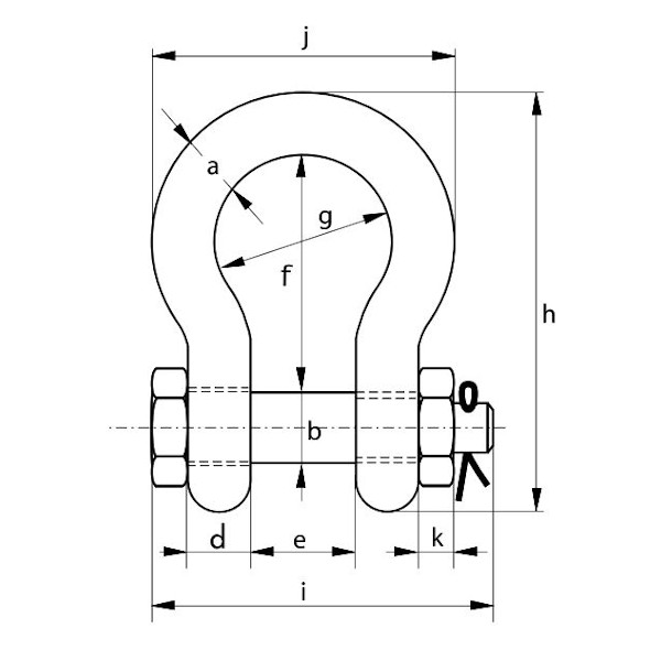 Trbušasti visokootporni škopac s maticom i rascepkom – nosivost 2000kg – svornjak fi 16mm – faktor sigurnosti 5:1 – norma HRN EN 13889